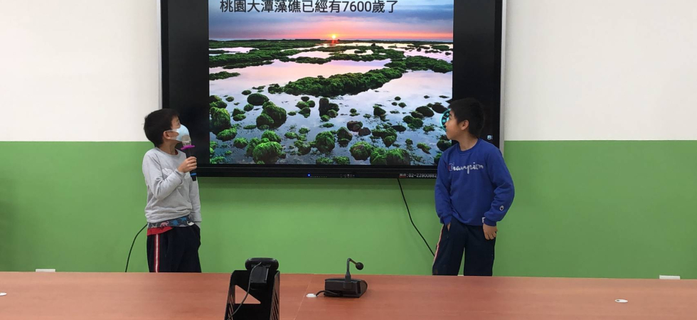 一、發聲:孩子們自願在國小的視訊朝會上,以PPT向全校師生說明藻礁議。