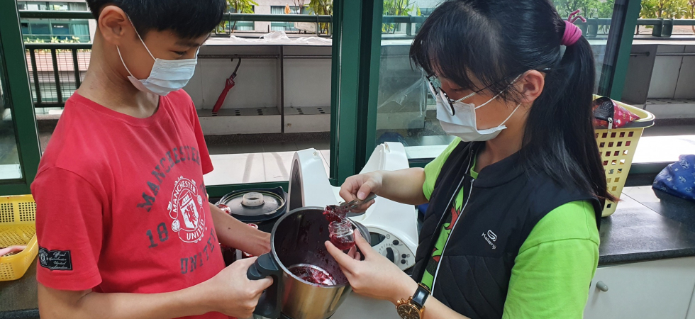 「喵喵永續果醬」配合本校小田園課程,由營養師指導種出洛神花,再手工製作成果醬義賣。