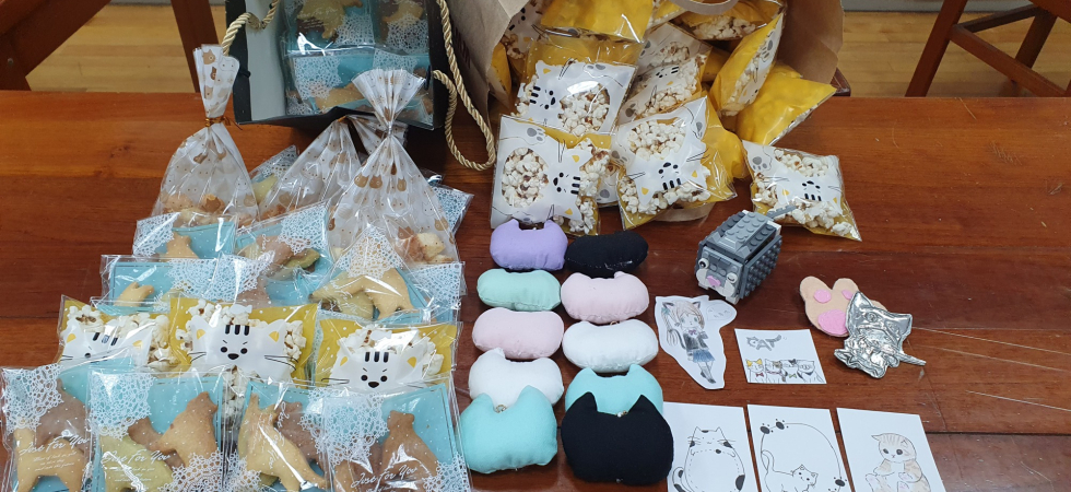 「喵喵指名餅乾」配合本校明水時間(由學生自由選擇主題類似小論文的課程),製作出貓咪形狀的手工餅乾義賣。