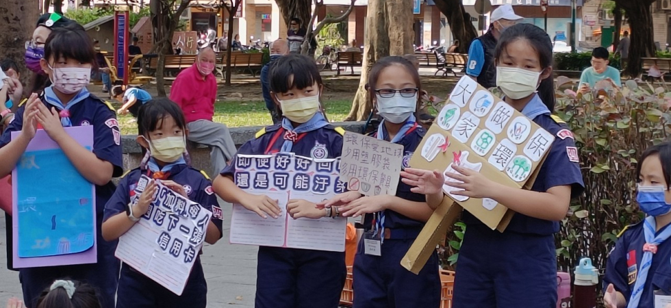 4.從童軍團開始,引導學弟妹開始行動,從一個個班級、校園到社區推廣綠色減塑行動