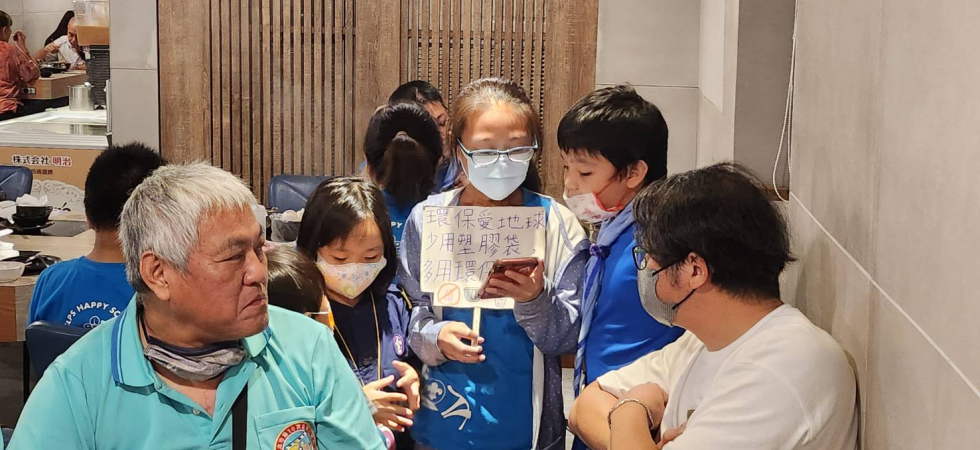 人多的地方就是減塑小隊出擊的時刻,童軍聯團活動大家都會很主動的攜帶環保餐具、環保杯,所以推廣並不困難,中午、晚上用餐時刻與夥伴好朋友聊聊,將愛地球觀念再次傳播出去,希望一傳十十傳百,觀念相同從小朋友開始傳遞到家庭、社區間,希望更多的人一起知道減塑的重要性。