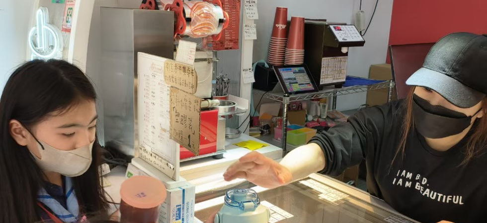1. 一周前團長與5年級小玥先到飲料店與店長說明,擔心影響飲料店做生意,沒想到店長超歡迎,店門前也特別貼上環保杯折扣愛地球的廣告,小玥與團長說如果有更多的飲料店願意一起支持,減塑能讓更多人知道。
