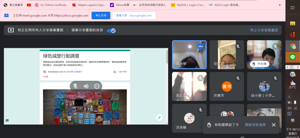 組、昌隆家長會群組與各班Line群組,調查活動拓展開來。很多認同減塑行動的家長,再次將表單推廣分