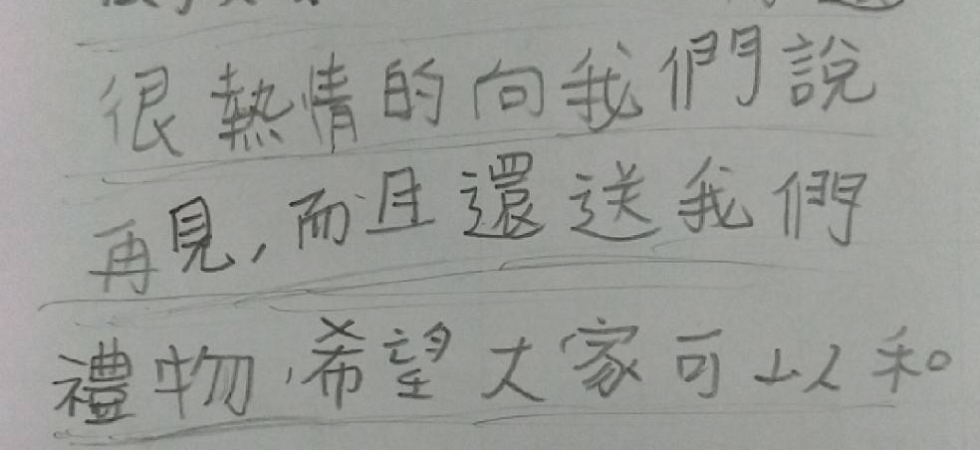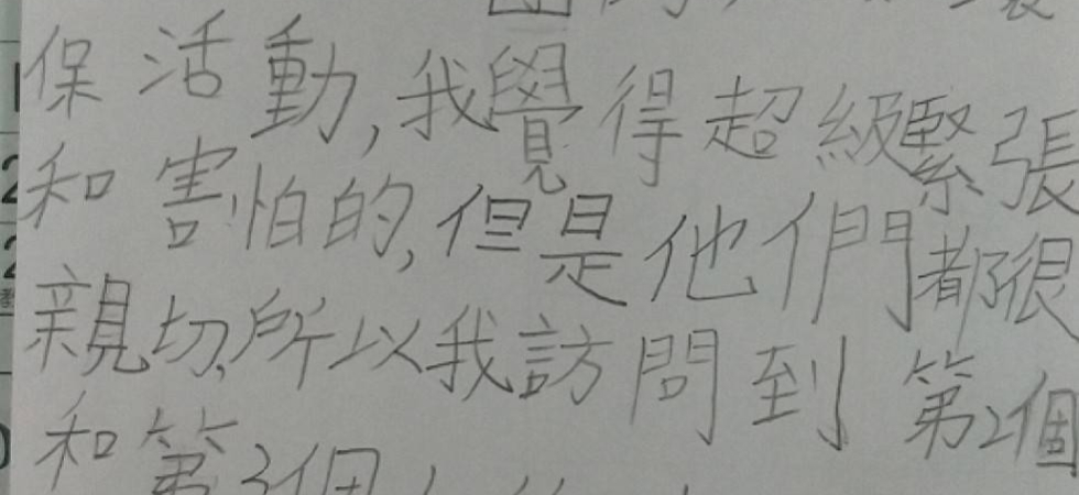 2.小婕與小妤三年級組,分享這次活動有些顧客說很忙就沒有接受調查,一開始感覺怪怪的,但是後來也有很願意接受訪問的顧客,心情又變好了,有動力。再繼續下去→團長告訴隊員們,這是很真實的體驗,能不怕困難繼續服務就是長大了!
