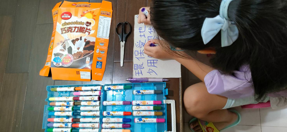 線下深入了解後,針對問題大家提出更多想法,原來塑膠對我們的生態有這麼嚴重的影響,大家很訝異我們的身體真的在「吃塑膠」,減塑推廣不在只是想像中的口號,孩子們從生活開始實踐,跟家人們一起攜帶環保餐具、環保袋,實際體驗減塑那些不方便,或減塑其實還有那些好處。小婕、小頤與媽媽用餐具裝外帶包子、炸薯條,一個晚餐就省下了3個塑膠袋。小玥鼓勵家人帶環保杯去買飲料,實際省下20元,也不用清理不好丟棄的塑膠杯。小妤請爸爸攜帶環保杯,爸爸嫌麻煩推說沒有錢買環保杯,發現媽媽很環保有一大堆。從生活中實踐,大家發現減塑不太難,只要開始願意做就對了!