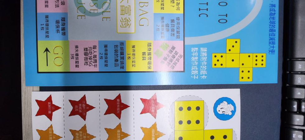 7.製作減塑大富翁遊戲,將環保行動設計在遊戲裡,藉由遊戲推廣減塑方法與想法