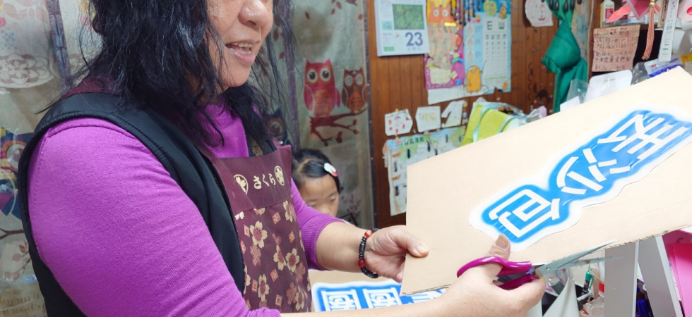 (5)小彤、小妤:所有任務一馬當先,挑戰很多不可能的任務。號召全家人之力共同製作海報、道具,活動前一晚大家挑燈夜戰,全家一起為了減塑推廣共同努力。