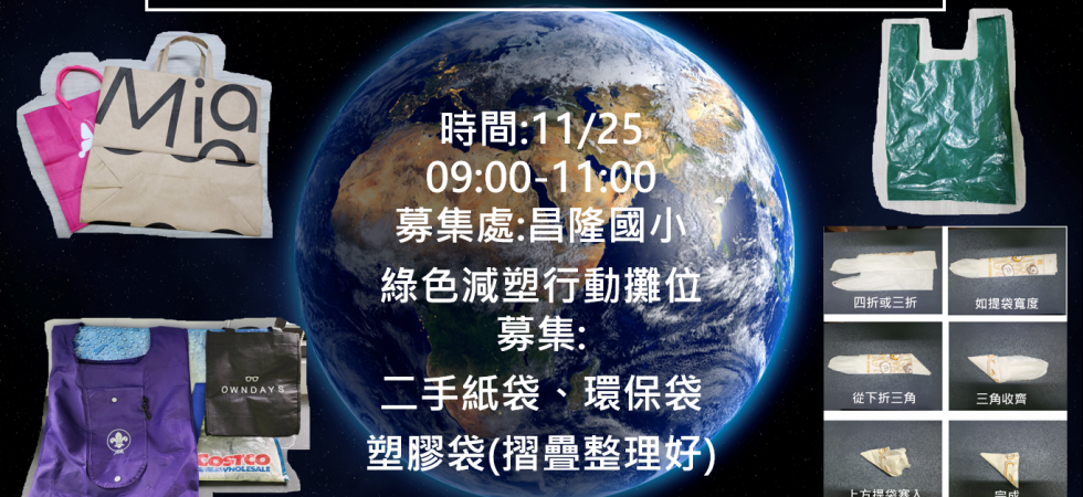 (2)自創減塑口號SLOGAN:「隨身帶一袋,減塑行動派!」