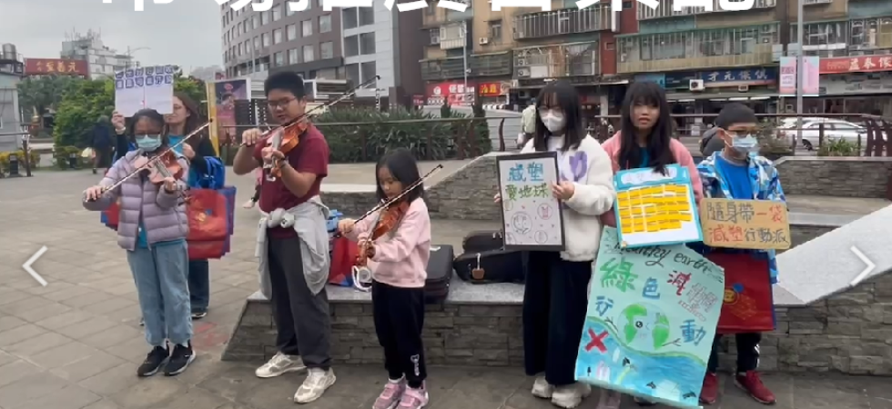 音樂是全世界共通的語言,孩子覺得破冰、破代溝應該也有效,小隊成員有3個大中小提琴手,可能沒那麼專業,但推廣減塑還真的很配。