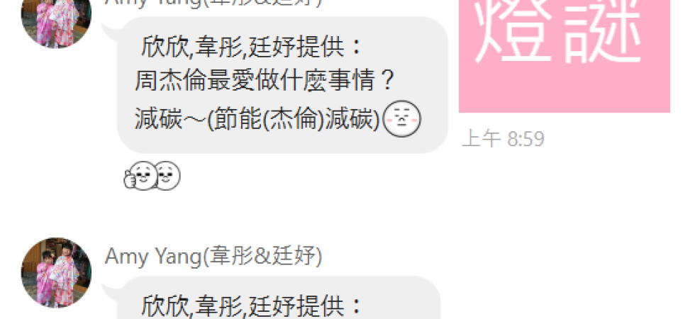 *韋彤:周杰倫最愛做什麼事情? 答:減碳(節能(杰倫)減碳)。