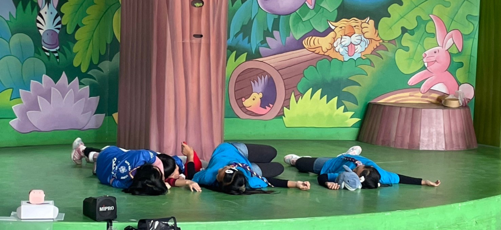 環保餐具影片大家覺得還不夠,分享文小朋友可能看不下去。小隊員提議拍一個小短劇故事,講述塑膠袋對生態的汙染讓大家知道。故事可能是小朋友比較擅長的,分工很迅速,故事很簡單,但是拍完了大家覺得很讚,最後故事結尾,過度使用塑膠袋,導致塑膠袋最後從海洋生物回到人們的肚子裡,最後只好GG了!小朋友的口吻,特別的生動有趣,所以決定把環保行動劇搬到舞台前,我們搬到校園演給更多的大朋友、小朋友看,也搬到大人們的春酒場,有趣的演出讓大家體會塑膠對生態的危害有多可怕。