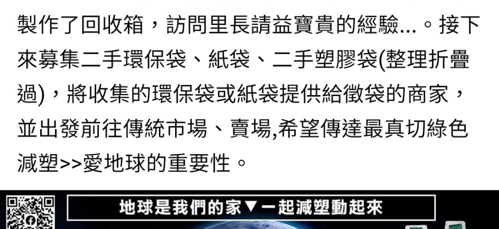 4. 社區里長拜訪,推廣綠色減塑,並與里長在鄉里間共同合作,塑膠再利用活動。