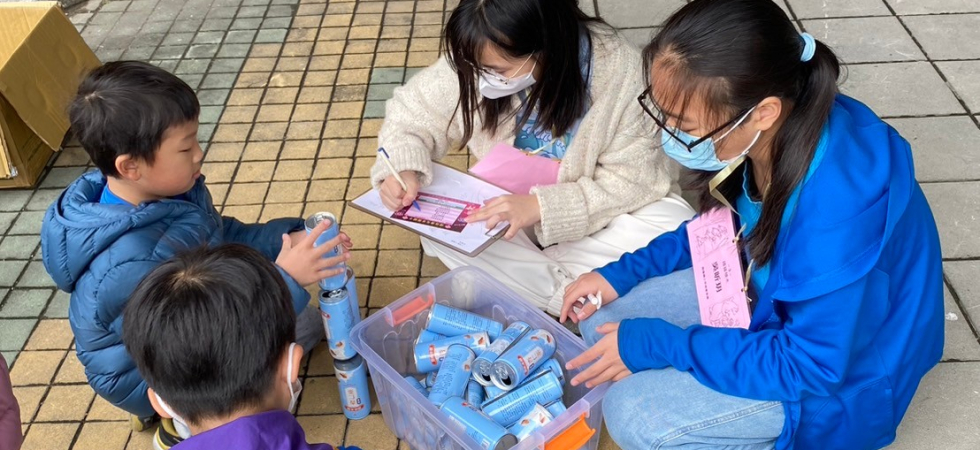 路過的小朋友對二手產品製作的道具玩得不亦樂乎,其實開心很簡單,關主有分享一位二年級的小朋友,把鐵罐疊的像金字塔那麼高,還開心地四處分享,旁邊的媽媽媽還笑說,家裡的樂高看來可以不用買了。