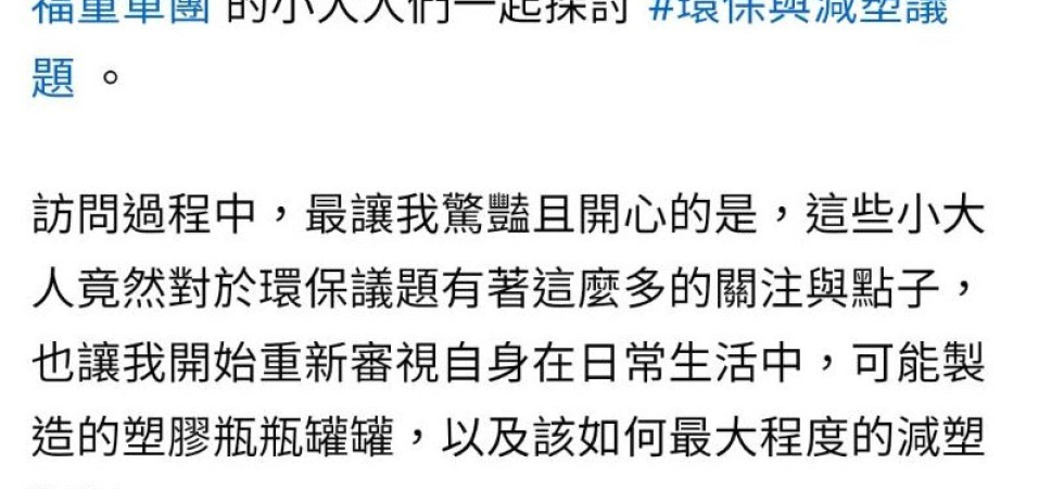 會先在自己臉書上同步推廣,同時會邀約新北市政府其他議員一同響應綠色減塑。同時小朋友希望能辦理大型綠色推廣活動讓更多人知道,議員稱讚並大力支持,綠色減塑需從小向上推動,大家能動的更快。
