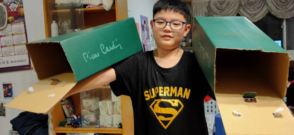 2-1孩子都是用紙箱製作的,如果放在戶外下雨可能紙箱就濕了