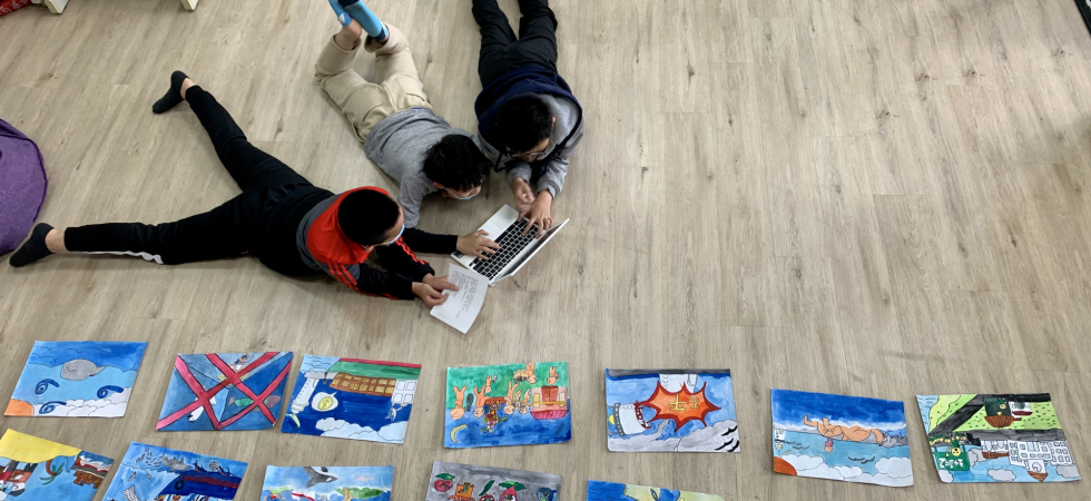 因此,我們籌劃著屬於特教班學生的「漁村文化」之旅,原先希望能以遊戲、藝術等方式,帶著特教小朋友到現場,以實際環境連結方式去認識這個已消失的漁村,但疫情來襲,在暫停戶外活動狀況下,我們改以繪本方式呈現。疫情緩解後,我們的繪本獲得了花蓮港藝術特展的邀請,讓行動影響力得以擴大。