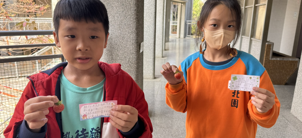 (3)感受與回饋:參與的小朋友,我們從當中選出最能理解我們茶會精神的回饋,獲得一顆我們自種、無農藥的大草莓喔!