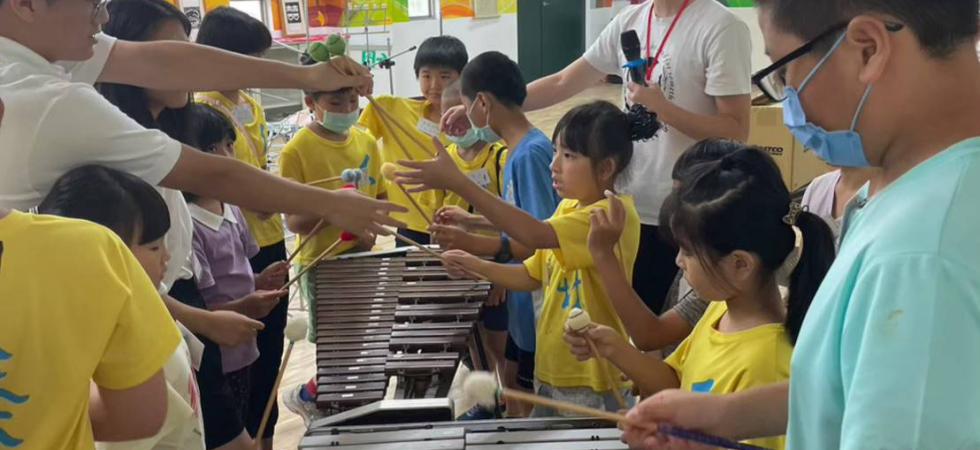 我們所設計營隊內容: 有讓孩子認識配音並實際找元素去為影片配音的擬音工作坊,有讓孩子自己DIY 製作一把屬於自己的烏克麗麗的手作工作坊,有讓孩子體驗打擊樂器與節奏教學的打擊工作坊,最後我們和孩子一起進行合奏音樂會,在合唱大手拉小手、小情歌及孩子點唱的啟程中,熱鬧的完成一整天的音樂營隊,而參與這次營隊志工的除了北一女和康橋高中的我們,還有來自建中和竹北高中的高中生共十一人。