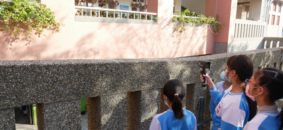 我們查找相關氣溫資料,以便了解學校以及附近社區整體氣溫變化狀況。接著,我們訪問總務處人員,了解學校整體用電情形;我們運用熱像儀和黑球溫度計到校園的各個區域進行測量,我們也到不同班級去進行調查,一到六年級每個年級分別抽樣三個班級,總共調查 470 名學生意見,了解大家最常活動的區域,以及大家在 5、6、9、10月教室可以吹冷氣時,對於這些活動區域的溫度感受。