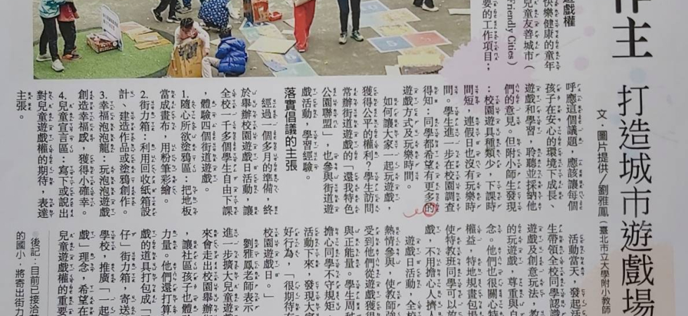 (1) 首創台北市國小第一場辦理「小孩作主的校園遊戲日」