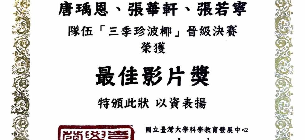 2.科學製作團隊-學生透過生物與化學老師引導,製作「生零屠碳」海報、影像創作、歌曲創作、電子書、桌遊等推廣宣傳。並拿下台積電青年尬科學最佳影片創作大獎,科學內容榮獲評審肯定。對於減碳推廣有著強而有力的信心。