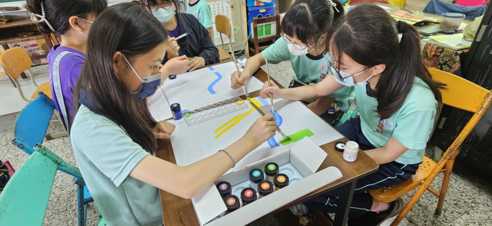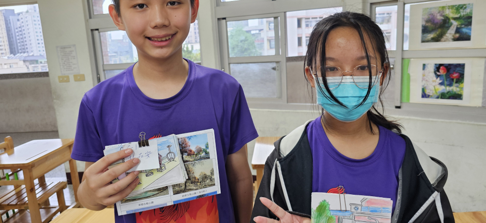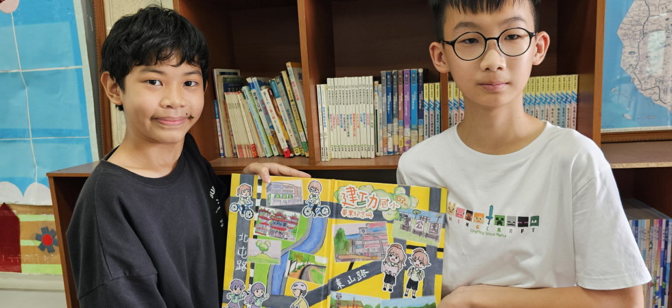 接著,在藝術與人文課程進行跨領域的繪製家鄉特殊樹木環境走讀地圖,規劃出「老樹巡禮」、「自行車漫遊」、「IG打卡」、「運動休閒」等四大走讀路線。