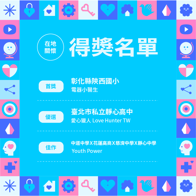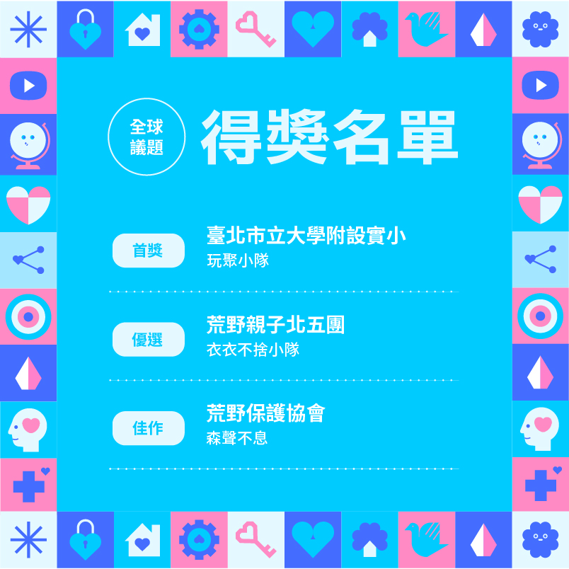 恭喜以下參賽團隊及教師榮獲第十五屆「愛讓世界轉動 兒少公益行動徵選」獎項殊榮!