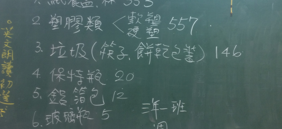 1. 自從資源回收確實做以後,班上的垃圾量就變得很少(過去天天要倒垃圾,現在一週倒一次就夠了),減少許多整理垃圾、回收物的時間。