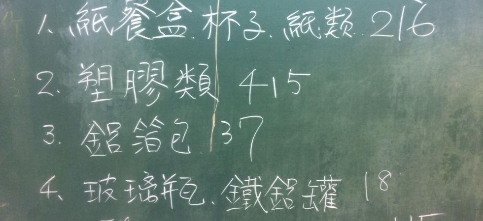 第四部:蒐集家中一週製造的垃圾,帶到學校來,一起分類、討論哪些類別最多?並在這堆垃圾前,討論可以如何減少這些垃圾的方法。