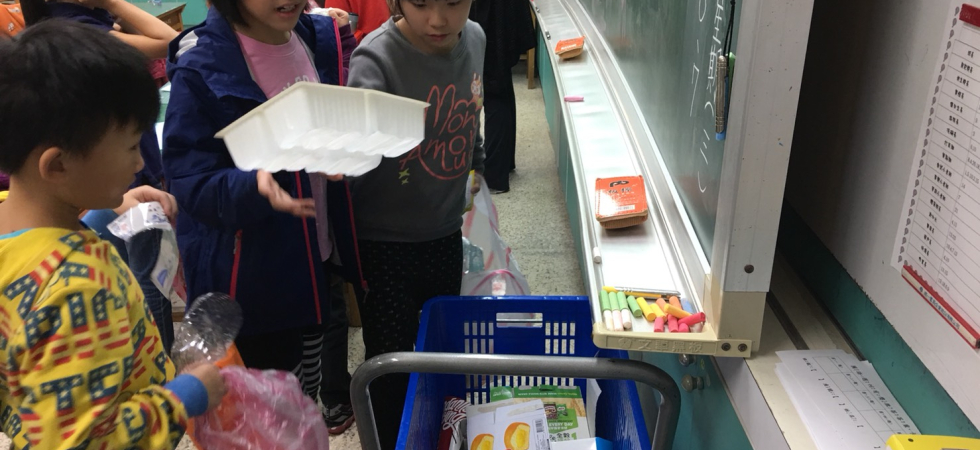 第一部:認識我們製造的垃圾中,有哪些可以回收?了解資源回收的項目,該如何處理這些資源回收物。經過教學討論後,一起在生活中實踐,並由導師協助實際在班級中每天執行。