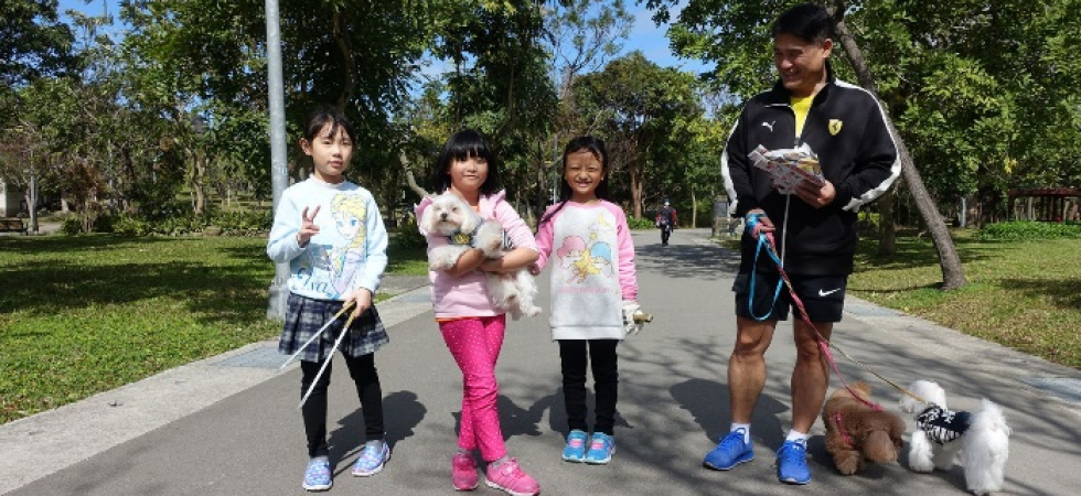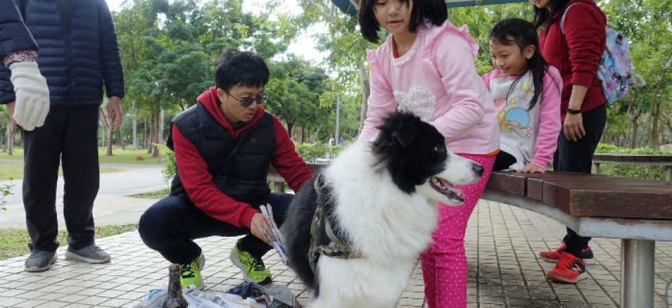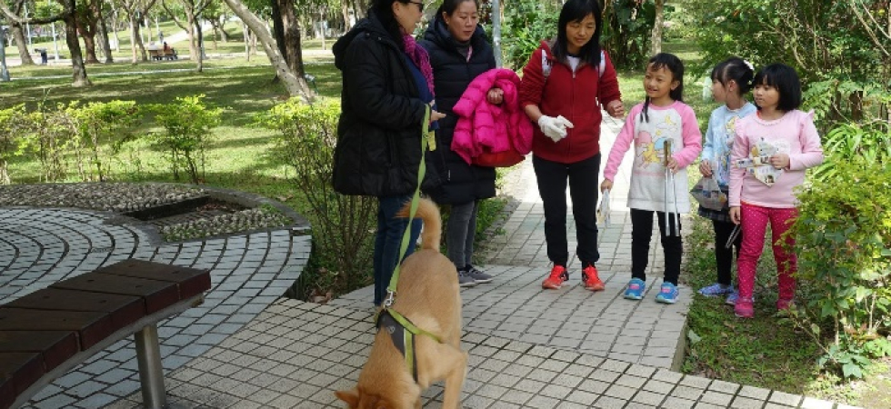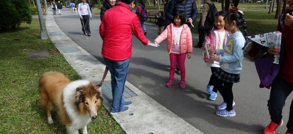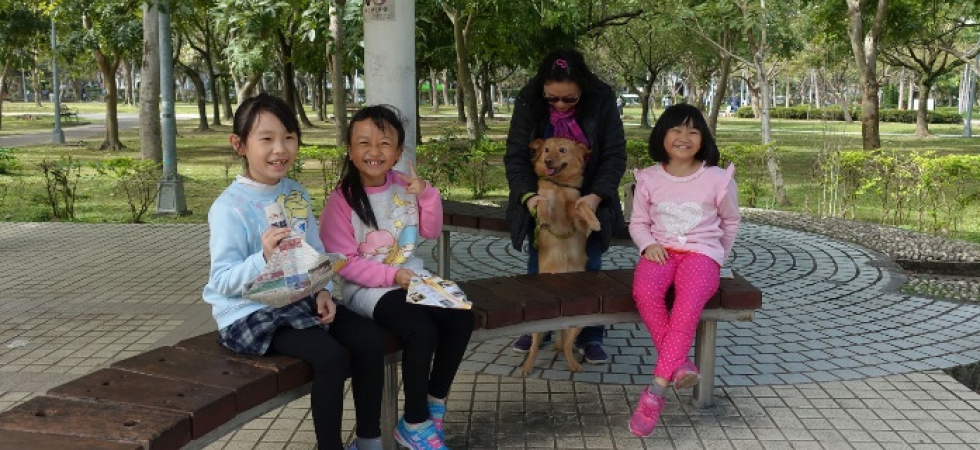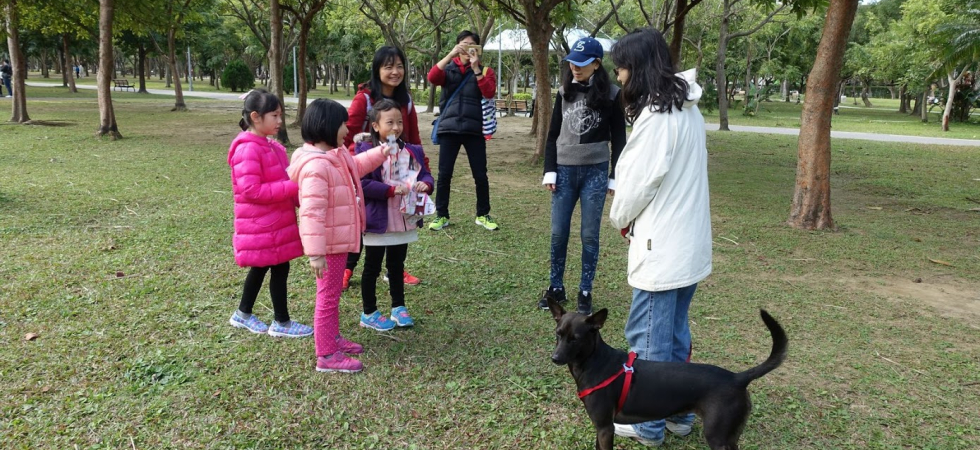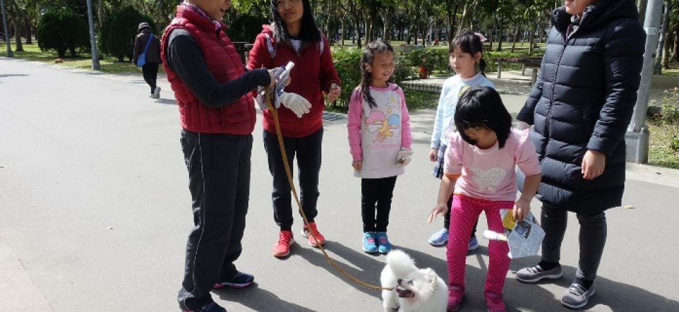 1. 環保狗便器:找到網路上有關製作環保狗便器的資源互相分享,先由組員各自在家中練習各摺10~20個狗便器,主要的材料為廣告紙或是報紙,因為考慮到狗狗有大有小,於是狗便器的大小也需要不同。然後集合大家將各自摺好的狗便器整理好,再一起摺更多的狗便器。然後帶到大安森林公園,選擇該地是因為場域大,宣導比較方便,且牽狗的行人會比較多。先由家長教導孩子如何宣導環保狗便器,經一一練習後,決定付諸行動。一人負責解說,一人送給路人狗便器,一人則在旁協助,從一開始的青澀到逐漸放開,努力的宣導著環保的重要性,還不時教導路人如何摺環保狗便器。
