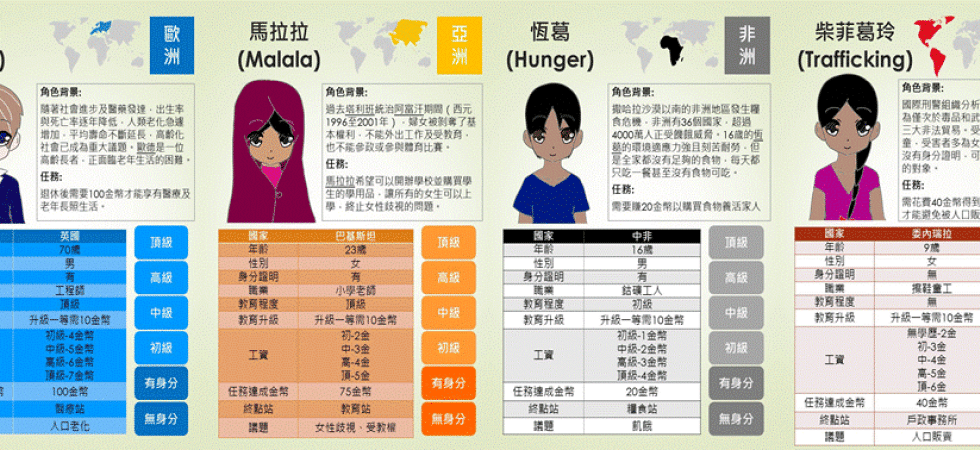 用桌遊讓玩家透過角色扮演,關注並了解各種世界的議題,並且化心動為行動去幫助別人