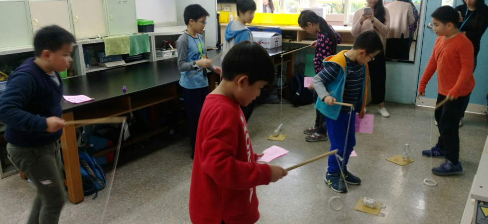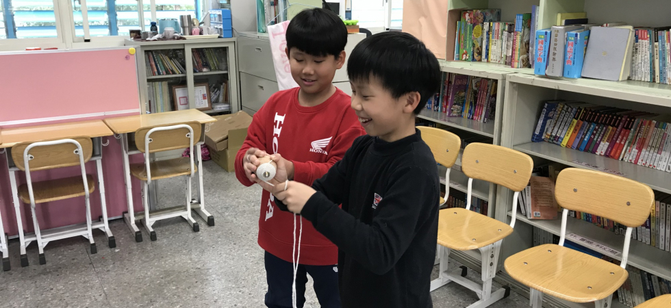 我們試著把漸漸消失的童玩由來及遊戲方式分享給學校同學,在遊戲過程中看見同學們在傳統童玩中找出玩的樂趣,不斷地練習再練習,這些童趣是3C無法取代的,有些同學甚至將這個童玩跟家長分享時,這一刻老玩具的回憶重新被尋回,我們知道童玩的遊戲價值是可取代的。