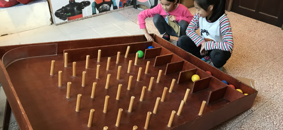 柯昱如: 我能幫助同學玩童玩,我覺得很開心,我們除了體驗童玩,還要找出最適合的童玩,並設計適合玩家的童玩,我們這次的玩具博物館之旅,讓我見到了很多新奇、稀少和我沒見過的童玩,例如:機關玩具、盤中戲、三人兩腳,其中我最喜歡的童玩是彈珠台,因為它有很多種玩法和種類,我覺得很新鮮也很好玩。