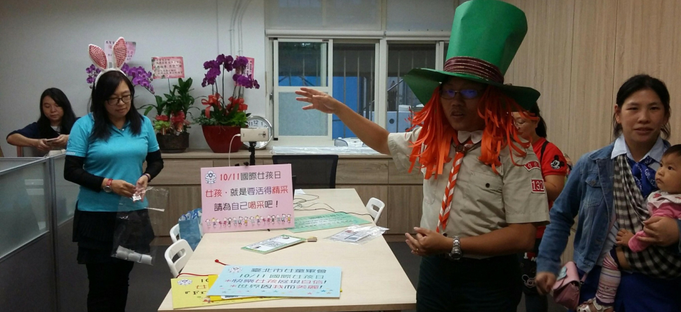 為擴展團員對於世界議題的認識,本團於2017年10月21日的團集會中舉行世界童軍空中大會,並結合國際女孩日的活動宣導相關的人權議題。在活動的關卡「渡渡鳥繞圈圈」中,以無線電通訊的方式認識了國際女孩日的相關知識;在「帽客與三月兔的下午茶派對」中,更進一步從國際女孩日的宣導重點中認識人權意涵,團員除了進行關卡任務外,也認識了在世界上的「貧困與饑餓」、「性別平等與人權問題」、「環境問題」、「受教育問題」等議題。