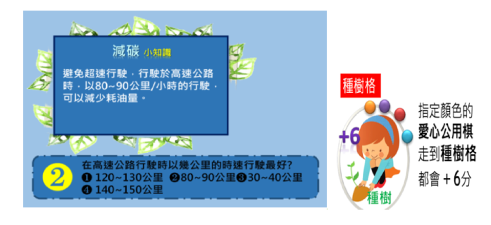 2. B組:偵碳知識家:我們製作了「偵探知識家」的減碳桌遊。桌遊裡有很多關於節能減碳的小知識,希望透過玩遊戲來傳達節能減碳的概念。玩過遊戲的人也可以把這些小知識記住,分享給其他人,大家一起來愛地球。