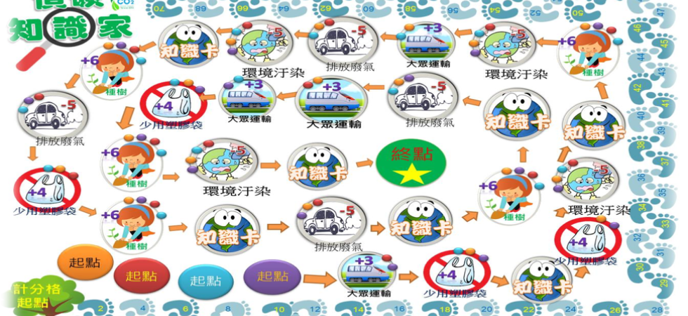 3. C組:地球驚碳號︰地球上的人們因為方便,忽略了保護地球的重要,直到有一天地球發燒了,島嶼一個一個沉沒,地球人才驚覺保護環境的重要。地球驚碳號遊戲中,地球人要來比比看,到底誰累積的碳足跡最少!我們想要透過遊戲來傳達關於碳排放量的概念。請大家跟我們一起來玩遊戲學環保。