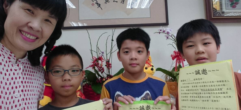 謝謝信義國小四年五班及六班的小朋友們:今天我們這一群爺爺奶奶度過了最開心的一天,因為被你們的熱情招待懂事有禮貌深深的感動。在活動進行中,因為你們用心設計的闖關活動,重拾我們年輕時歡樂的時光,也因為你們認真的表演及貼心溫暖的種種表現,讓我們看到你們未來的無限希望,祝福你們擁有最美好最有意義的幸福人生。