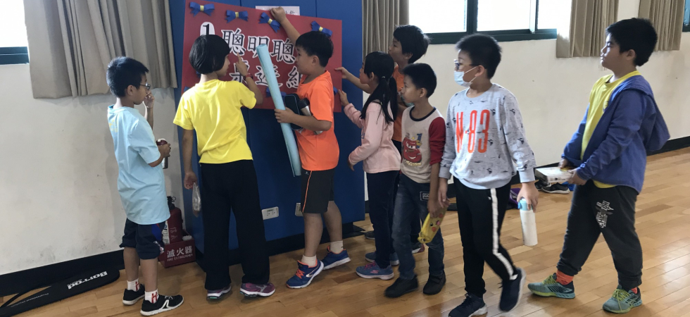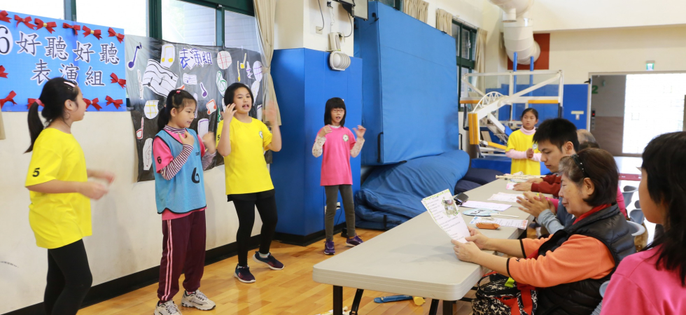 在12/11(二)早上9:30~11:30闖關的當天,我們有一些孩子先進入活動中心做場佈,有一些孩子在大門口帶領協會的長者入校,並帶領進入活動中心。闖關活動中所有的主持、表演、各關的活動掌控、時間的提醒、點心的分配和場地的整理,都是由所有學生規劃完成。向日葵慈善協會的長者大多是健康的、行動自如的長者。但是也有一些長者是有失智症的,行動緩慢或是無法清楚表達的長者,協會除了有安排工作人員隨身照顧之外,我們也在每個關位安排不同的體驗和互動,讓長者有不同的感官刺激和感受。[聰明聰明桌遊組]中準備不同的桌遊,刺激長者運用腦力和合作;[美麗美麗畫畫組]在紙上準備虛線讓長者描出和完成塗色後,成為一棵領導力課重中的習慣樹;[有趣有趣昆蟲組]除了介紹不同種類的昆蟲之外,也會請長者做記憶力大挑戰;[舒服舒服按摩組]讓長者在肩膀和手臂有不同的區塊放鬆感受,並在按摩後送上每個長者一包暖暖包;[可愛可愛摺紙組]將剛在萬聖節學會的可愛折紙教給長者,引導長者做手眼協調的練習;[好聽好聽表演組]演奏直笛和唱老歌,鼓勵長者一起拍手吟唱,刺激長者的聽力和勾起往日回憶。我們並在整個闖關中穿插了兩段我們的兩個班的大表演:一個是領導力課程中的習慣歌,一個是我們在運動會中表演的大會舞,讓長者可以休息吃吃點心。