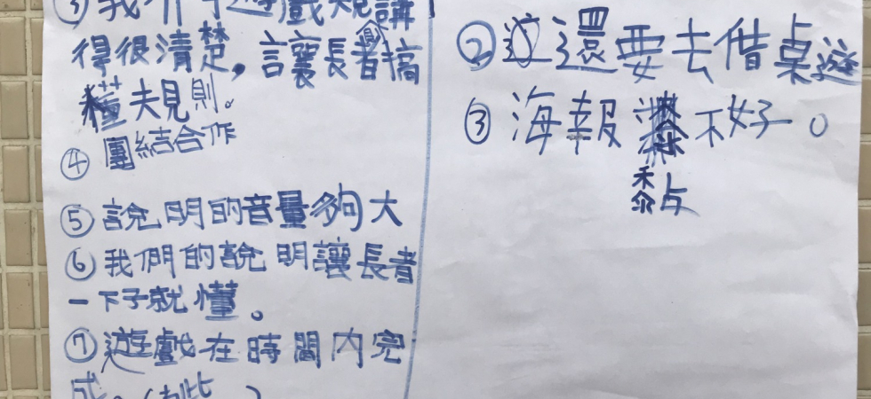 當天闖關結束後,我們也由自願協助的孩子擔任長者的午餐小天使,協助長者在校內完成午餐。當天學生有寫一份學習單,其中也包含家長的回饋。學生對於整個活動的目的和流程非常清楚之外,也能在活動中了解自己的表現,家長也非常認同活動的目的和活動的意義,並在活動結束後給予最大的讚美。