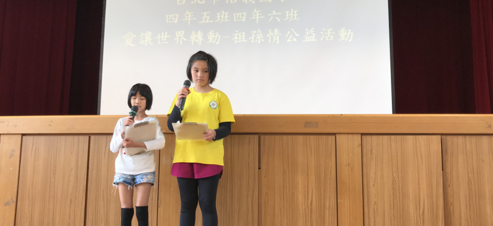 1/18(五)休業式當天,我們兩個班的孩子也針對整個活動的流程和心得分享給全校的老師和學生。希望這次的活動除了感謝學校的協助之外,也希望從這個活動成為一顆顆溫暖的種子,散播給每個孩子與社會,讓大家除了能關心高齡化的問題,也能發揮自己的能力主動關懷需要幫助的人。