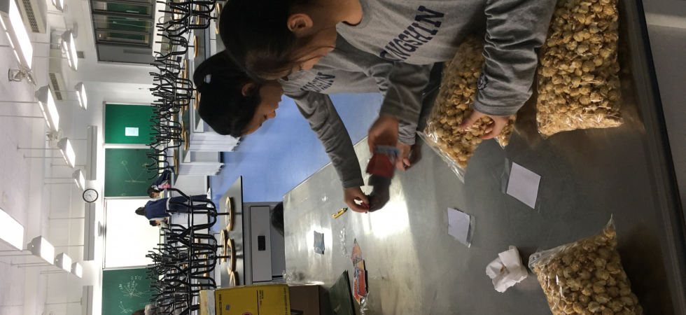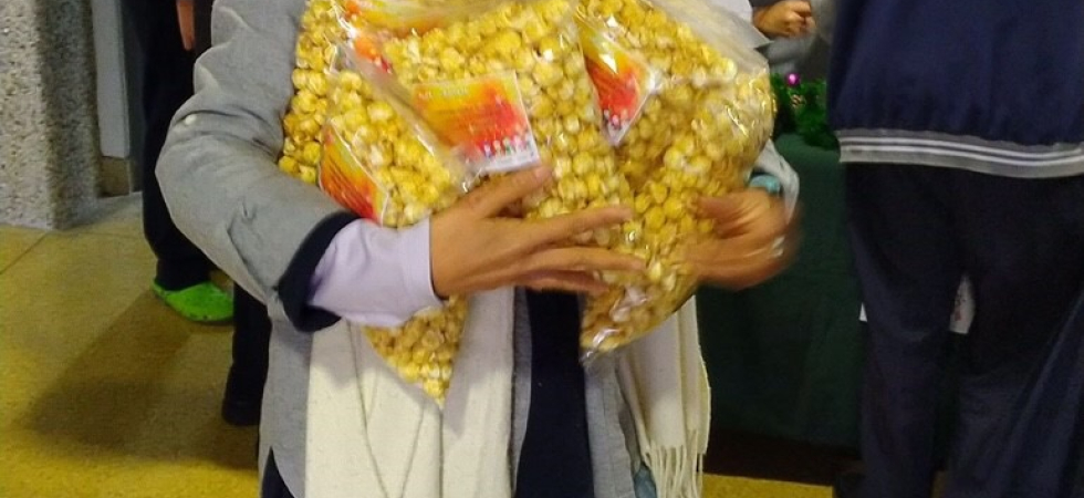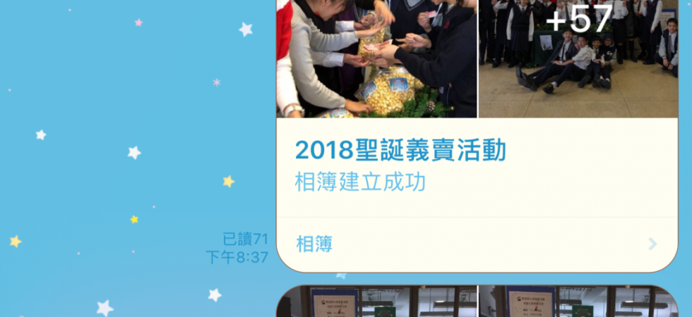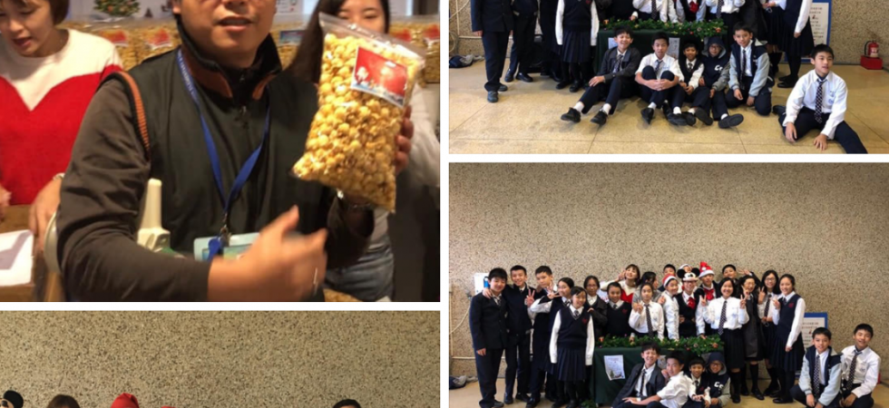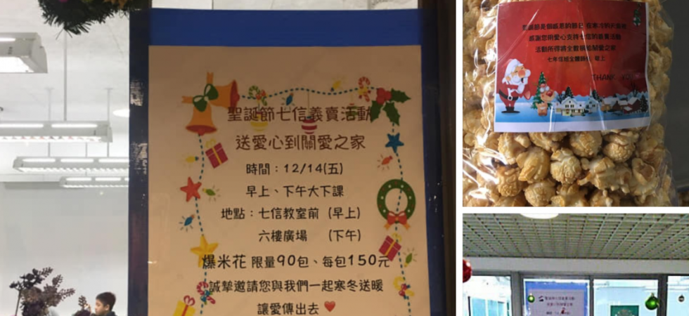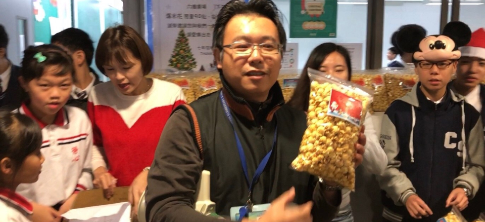 2018.十二月 家長群組發布訊息、學生分組進行責任分工(宣傳組、美工組、場佈組、財務組)、爆米花義賣、關愛之家送暖。