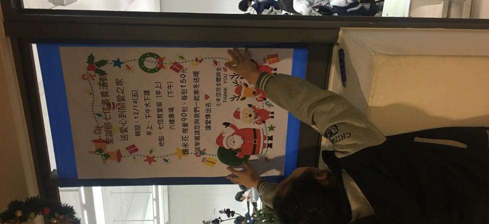 2.入班義勇軍:學生2人一組,進行入班宣傳。除了跟該班級導師說明原由之外,也在各班張貼文宣,讓更多人了解活動意義,以及關愛之家的需求。