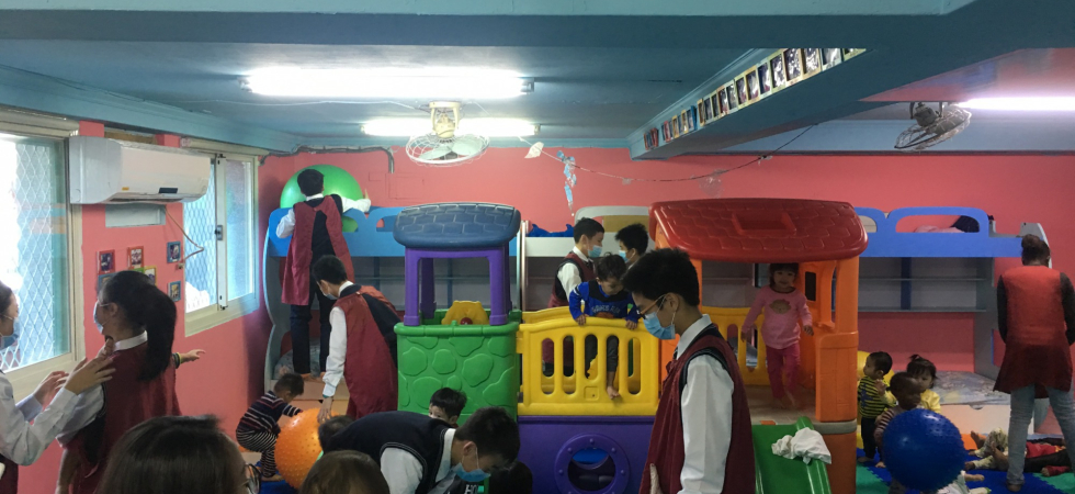 1.關愛之家一樓為幼兒區,幼兒的年紀大約在10個月至3歲之間,男生主要活動區域為關愛之家一樓。主要工作內容為陪伴幼兒、協助清理打掃以及餵食。