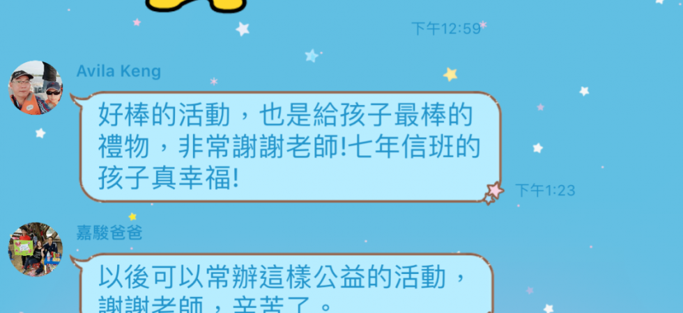 只要心中有愛,想做什麼事情都將不再困難。2018年,帶著七年信班的孩子,從聖誕節義賣爆米花開始,我們展開一條愛的公益之旅,我們將義賣所得捐助關愛之家,我們也帶著孩子前往關愛之家一同關心移工的孩子們。對這一群被遺忘的天使,關愛之家是家、是城堡、是希望。我們這一群大哥哥、大姊姊要當他的大樹,保護這群小樹成長茁壯。而成功不在於堅持了多久,而在於你能否繼續堅持。未來的日子,我們會帶著七年信班的愛心小尖兵,持續努力。