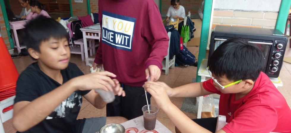 扣除組長負責總籌進度以及協調支援各組,剩下同學分為三組:土餅乾與髒水調製組、發票捐贈與連署組、禿鷹追趕體驗組。除了這幾個同學之外,這個班級的其他同學也主動地在需要協助的時候伸出援手,讓整個活動進行得非常成功。