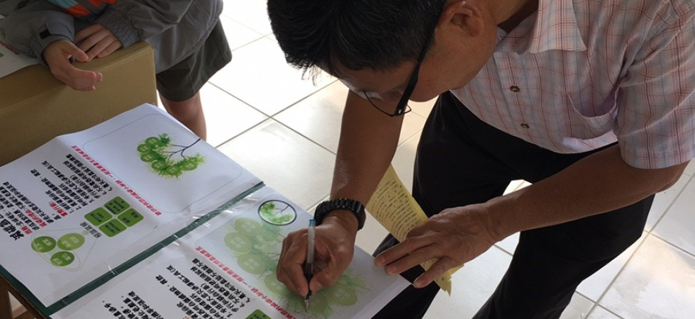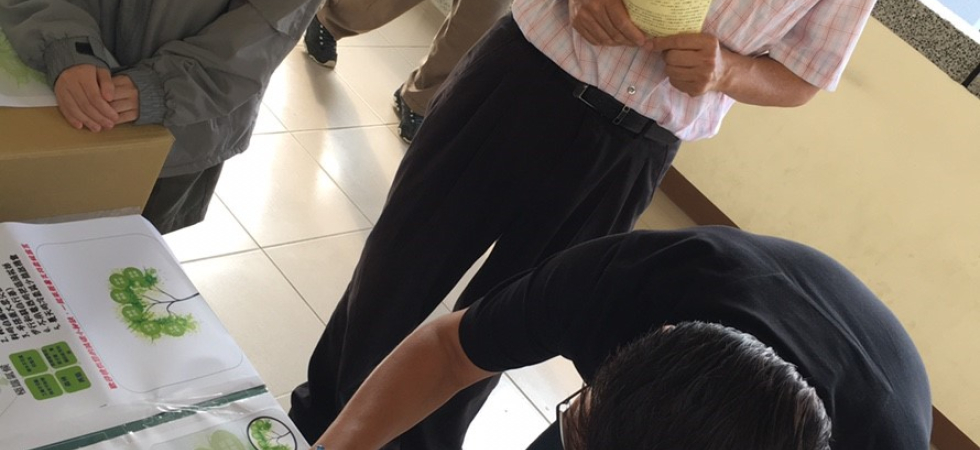 說明:我們前往龍山里遊說里長!希望里長在社區增設youbike小站、多一些植栽牆並且在社區設置多一點座椅、以及增加綠走廊的空間!!),當場獲得里長的首肯協助向工程單位說明加強植栽,淨化空氣,在龍山里多些綠意盎然的空間。