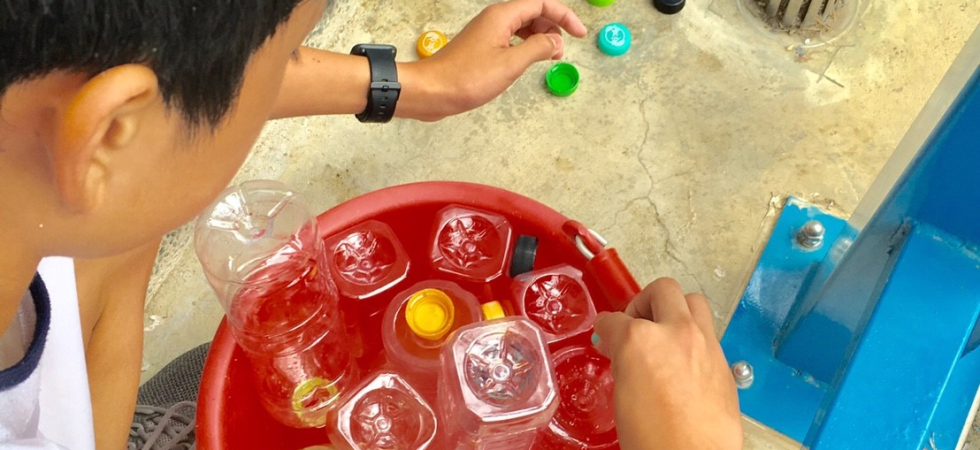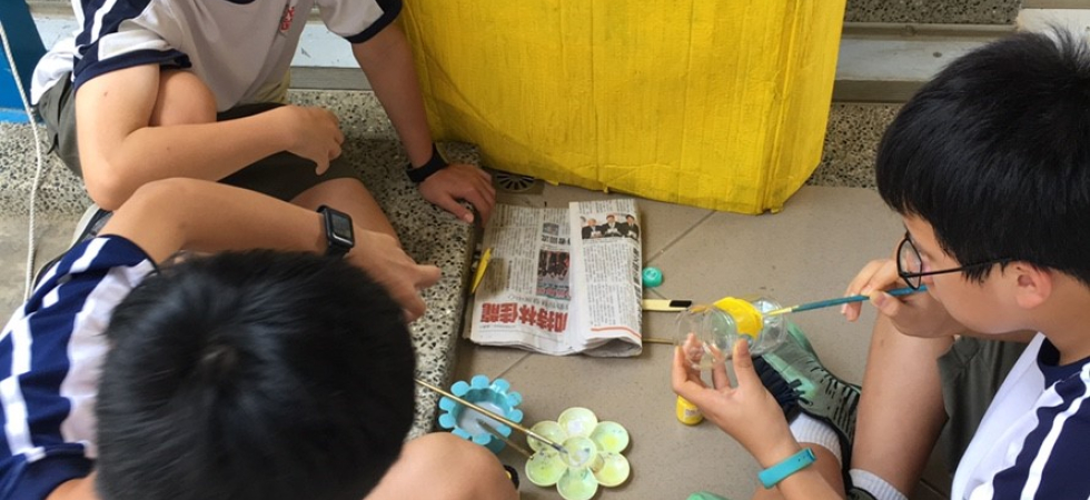 5. 設計裝置藝術作品在校慶園遊會上宣導保護地球。