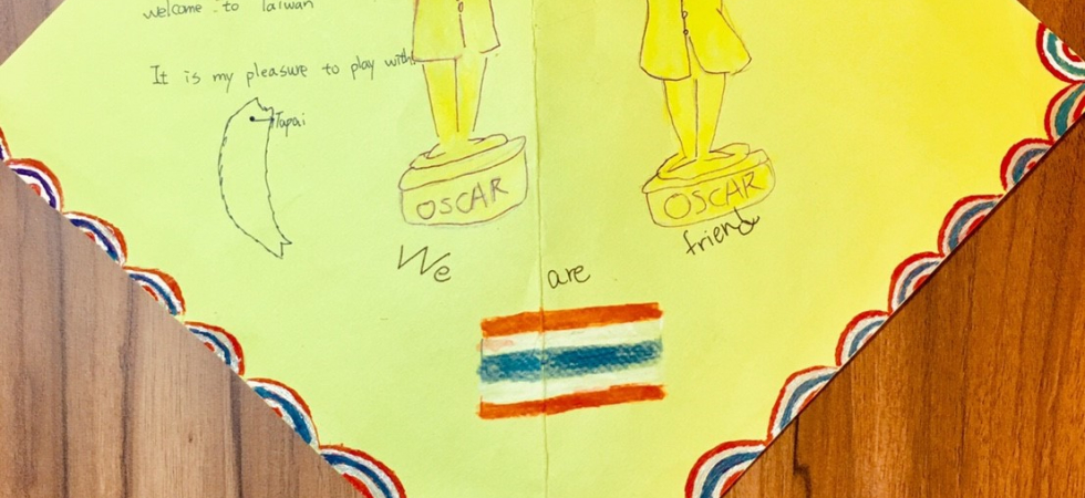 說明:寄卡片給泰國朋友,邀請參與跨國教室連結與共同來討論『氣候變遷』節能減碳行動。