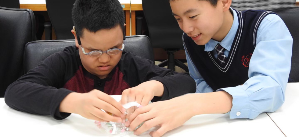 國小部「愛心獵人」團隊於2019年三月初發起「為愛朗讀」計畫,在張夢澤老師與林秀穎老師帶領下,號召國中部「小英雄大聯盟」團隊加入。校內行政團隊輔導室與學務處知悉後亦主動加入愛的行列。在大家努力奔走與用心製作下,終於在年底完成兩組CD致贈啟明學校。不僅讓啟明同學可以聽到知名作家的文采,團隊中有跨領域科技專長的同學甚至製作出3D點字姓名牌,協助啟明學校同學解決生活中的不便。從一群國小同學愛的發想中,號召國中部的學長姊,大手牽小手,在愛的路上相伴,為啟明學校點燃知識之光。